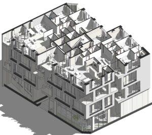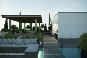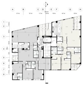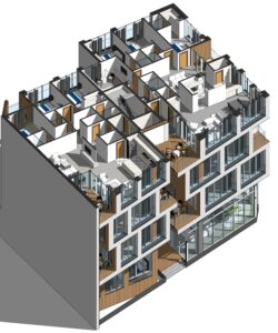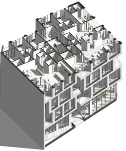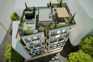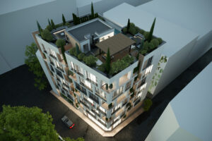 The vision of the design group from the legacy of modernism proposes a new definition of “home” and “lifestyle”, therefore, in line with modernist dreams to improve human life, private open space is maximized in the majority of classy green yards and the definition New apartment units are offered. The evaluation of this approach has proven that the commitment to a revitalizing architecture that is at the same time technological, creative and environmentally responsible helps to improve the level of human life and create economic opportunities and increases the sense of success and personal investment in It becomes residents. Therefore, in this project, the main effort of the design group was to avoid further intervention in the city view, the facade facing the street should have a simple expression, but at the same time, a unique form and a dynamic view that focuses on the vertical arrangement of the units. also emphasize In the design process, it was tried to consider each apartment as an individual house that interacts with other apartments on the floors. To create a dynamic and unique view has a significant effect on increasing the spatial quality inside the units, it should be noted that the design proceeded in such a way that this gap created in the north and west view leads to interaction and integration in the overall view. Also, visibility and privacy were maintained in the units.In the design of the project plan, an effort was made to separate the two public and private zones of the unit from each other. On the other hand, in the units, we separated the public zone into two public and semi-private parts, which include the guest reception room and the TV viewing room. The service zone, which includes the kitchen, between the two public zones (guest room) and the semi-private zone (TV room), every effort was made to design these two zones to have a suitable and desirable access to the service zone of the apartment and with Providing double-height terraces in the units in the vicinity of the reception of guests and the service zone, in addition to the development of the spatial quality in the view of the units from the inside to the outside, we always tried to make these terraces functionally capable of working with the service zone.