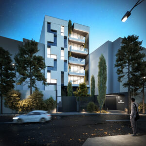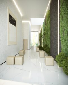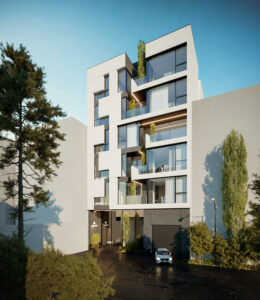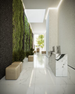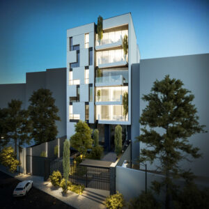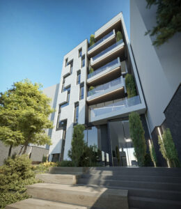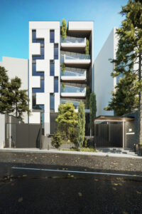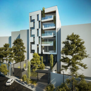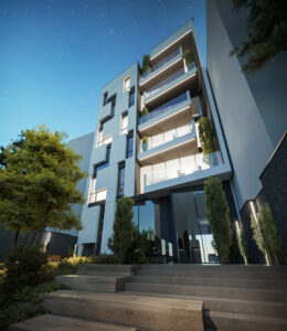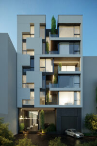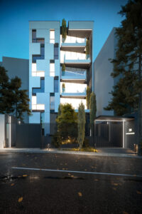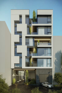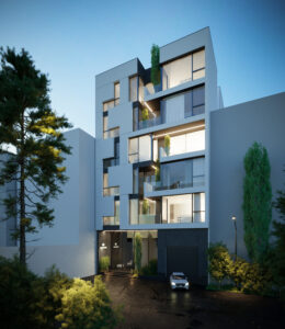 Shirin Residential Building is located on a 561-square-meter plot in Agha Zagheri Street, Tehran. The building comprises five residential floors above ground and three basement floors. The site’s unique location, offering access from both the north and south passages, presented the design team with a range of opportunities and challenges. The project features two primary facades facing the north and south, leading the design team to focus on creating a harmonious and functional layout that meets the needs of the building’s users while ensuring that the form and views from both sides are balanced and iconic. To address this challenge, the design strategy involved marking the mass and space of the building in a way that allowed the units to be clearly defined in both the north and south sections. Vertical circulation and access spaces were placed in the central zone of the site, allowing for separate lobbies on each floor, optimal lighting for the spaces, and the removal of shared walls between units, which contributed to the overall functionality and comfort.
