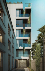 A residential building with an approximate area of 365 square meters comprises five residential floors above ground level and one basement level. The primary challenges of the Motaghian Residential Project stem from the location, context, and spatial limitations of the site, particularly in facade design. Situated in Tehran—a city characterized by complex topography and visually cluttered facades—the project faces the challenge of creating a distinctive urban presence in a setting where visibility is limited. The site’s positioning results in restricted views, making the building less conspicuous compared to the surrounding structures, and less visible from Motaghian Street.