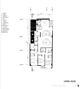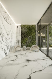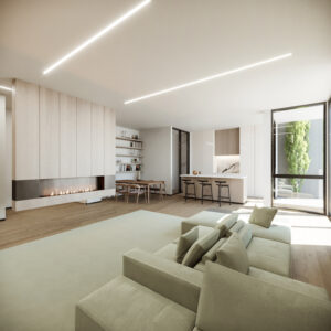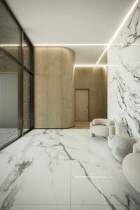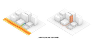 The main question arises: how can this project create an active, prominent urban facade despite these constraints in form and location? To address this, the design strategy focused on introducing openings on the north and east sides of the project, allowing natural light, views, and the surrounding scenery to penetrate into the core of the building. This not only enhances the interior experience but also strengthens the connection between the building and its environment. Additionally, the often-neglected third facade—typically left underdeveloped in many construction projects—was integrated into the main facade design. This approach results in a unified and cohesive facade that is clearly visible from the street, making the building stand out and become a more identifiable and engaging element within the urban fabric. This design strategy ensures that, despite the limitations posed by its context and location, the project establishes a significant architectural identity and visual connection with its surroundings.